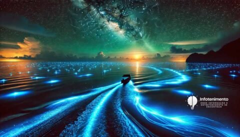 Imagine estar em alto-mar durante uma noite escura, cercado apenas pelo silêncio das águas. De repente, o oceano começa a brilhar em um espetáculo de luzes naturais, uma dança luminosa